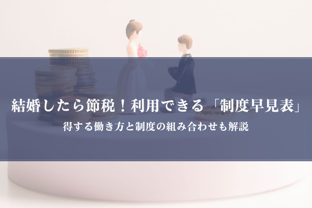 結婚したら節税!利用できる「制度早見表」得する働き方と制度の組み合わせも解説