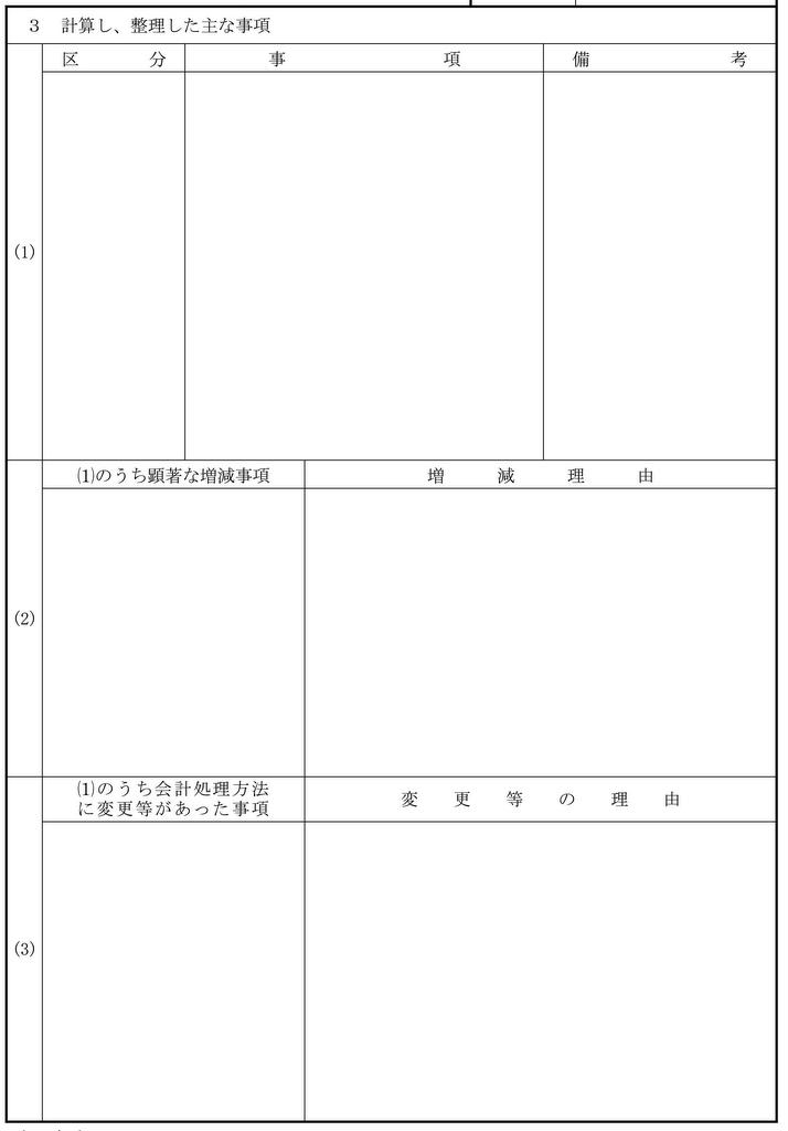 また、例年採用していた会計処理の方法に変更があった場合も、本項目で記載し理由も整理します。